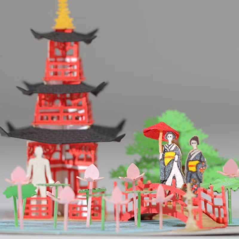 FingerART DIY紙藝術模型 日本文化系列- 三重塔(附展示盒)