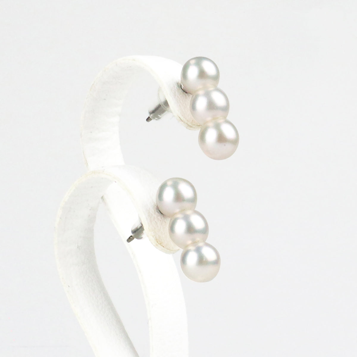 【愛媛縣】Akoya 3顆珍珠線耳環 5.0-5.5mm